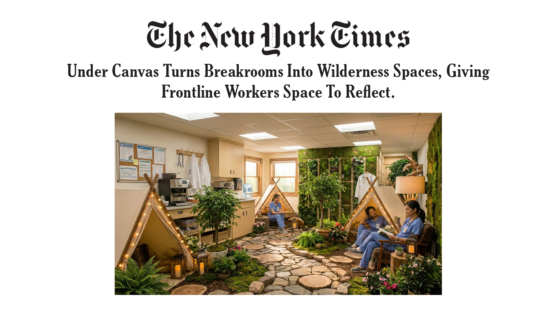 Under Canvas converts breakrooms in hospitals, schools and call centers into micro wilderness spaces for a moment of clarity in the middle of the day.