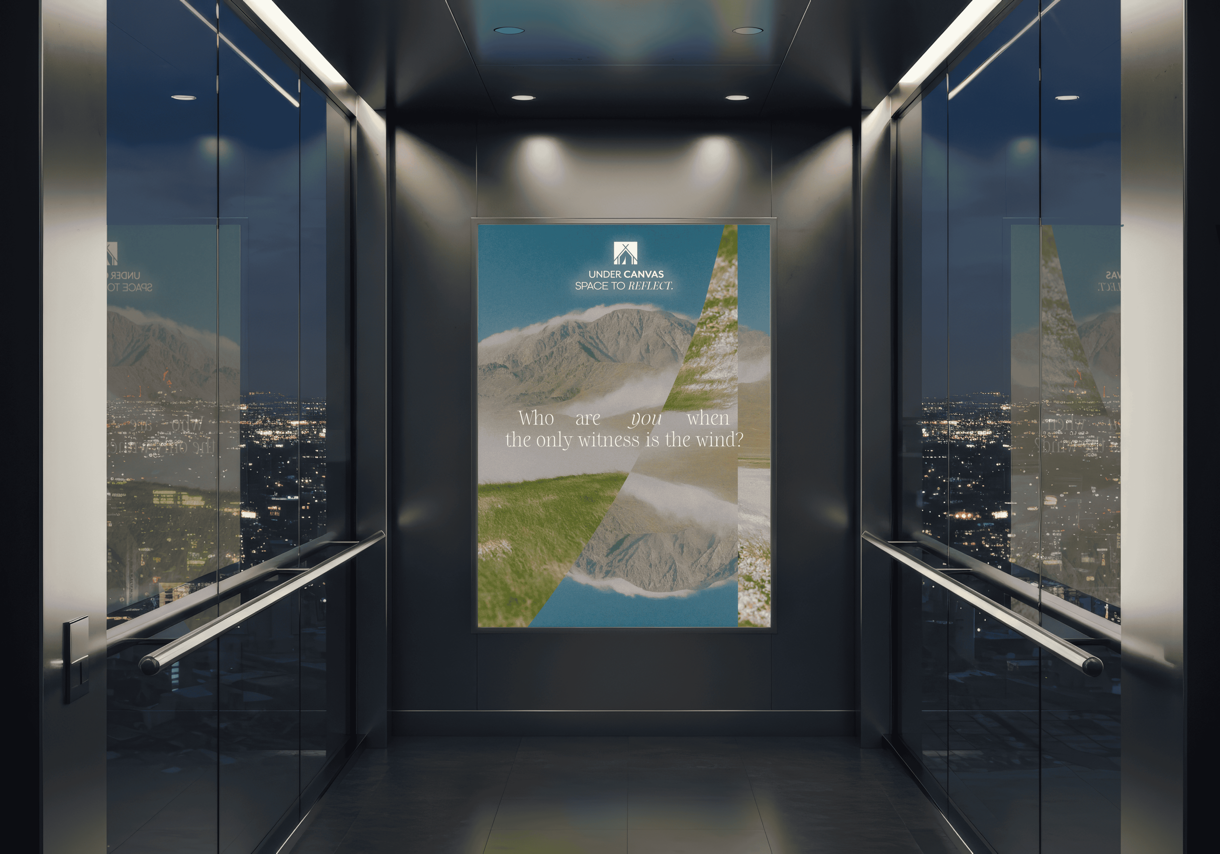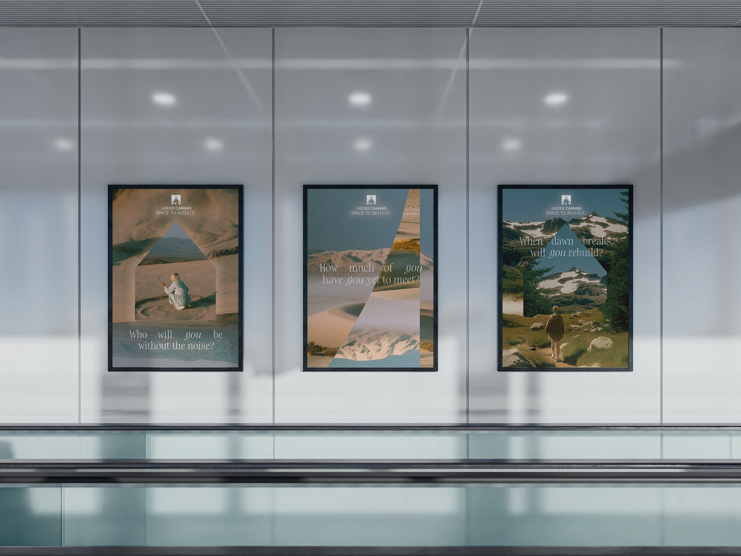 A stark journal built from the campaign’s questions. One page, one prompt, one honest answer. Paired with meditations built from the natural soundscapes of Under Canvas campsites.